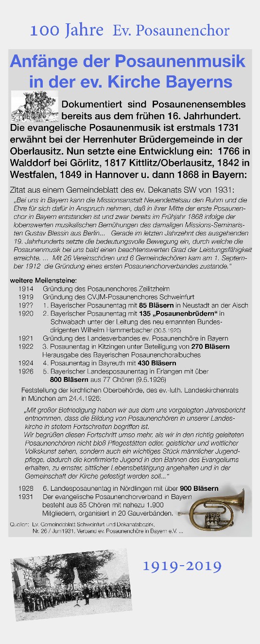 In den hundert Jahren des Bestehens des Posaunenchors hat sich viel verändert, das gilt beispielsweise für unsere Besetzung, heute sind unter den Musikern ungefähr ein Drittel Frauen.