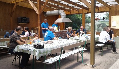 Wir verputzten Reiners Grillwürstchen und gönnten uns ein kühles, frisches Getränk. Angelika`s Blechkuchen – Quark mit Rosinen – war der „Hammer“. Eine Tasse heißen Kaffee dazu und die Welt war wieder einmal mehr in Ordnung.