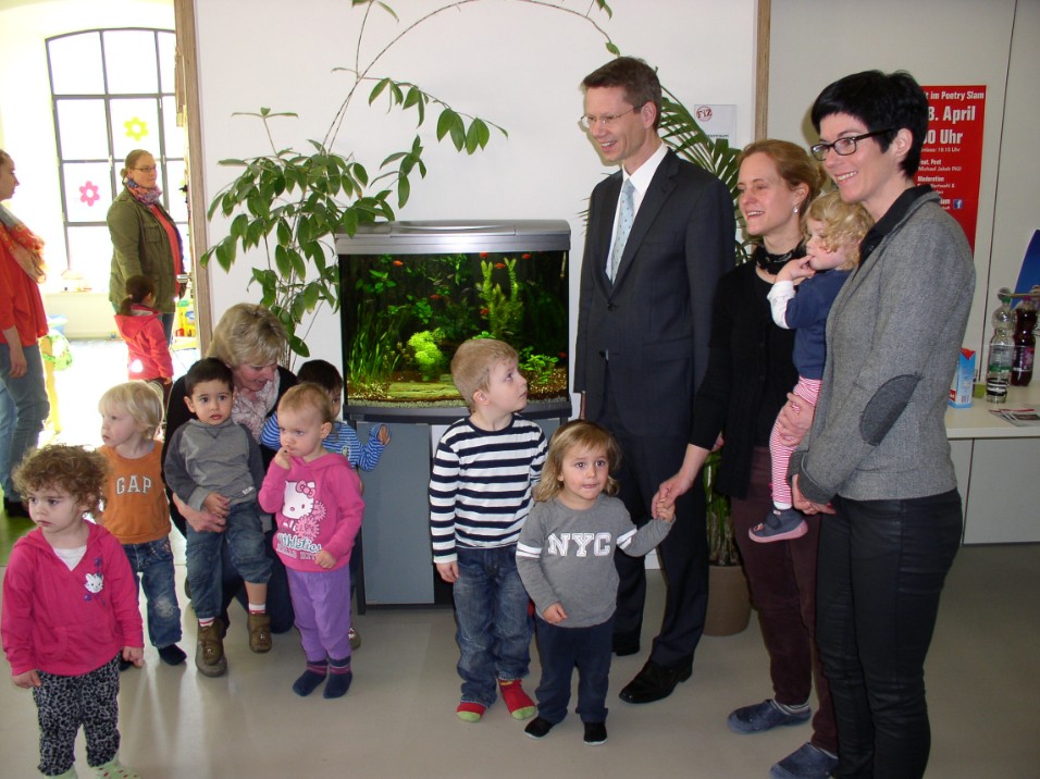 Das Aquarium im neuen Haus der Familie im Schweinfurt Zeughaus wurde von unserem Vereinsvorsitzenden Erich Schneider eingerichtet und wird im ersten Jahr vom Aquarienverein Scalare betreut. Die Kinder von FiZ (Familien im Zeughaus) sollen so an die Natur herangeführt werden und lernen, Verantwortung für andere Lebewesen zu übernehmen.